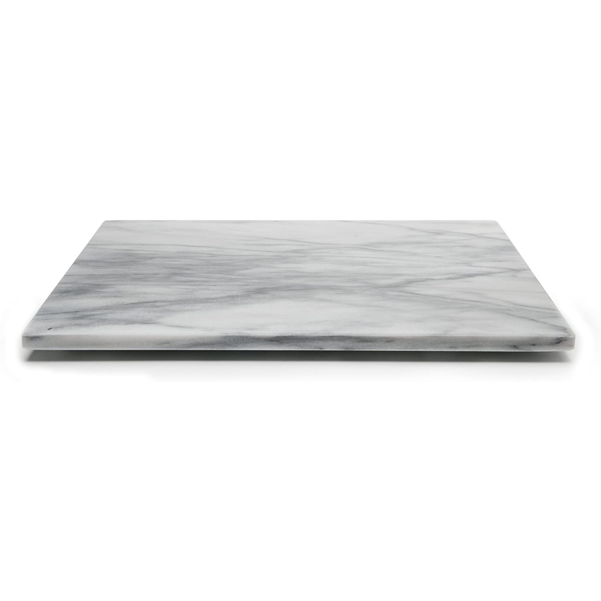 The Fox Run White Marble Pastry Board, an exquisite tool for bakers and chefs. Measuring 12 x 16 x 0.5 inches, this pastry board features a cool, non-stick marble surface with plastic feet, perfect for rolling dough or serving charcuterie with elegance.