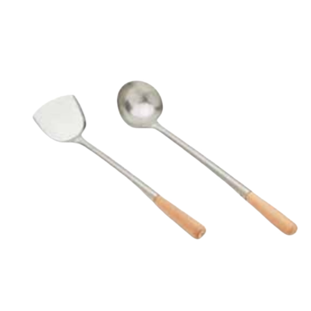 The Chuan & Hoak Set is an essential, authentic tool pair for anyone who loves traditional Chinese wok cooking. Handcrafted with exceptional attention to detail, this set includes a Chuan spatula and Hoak ladle both designed to handle high-heat stir-frying with precision and ease. Built from heavy-duty stainless steel and finished with heat-insulating wooden handles, these tools deliver professional performance in both home and commercial kitchens.