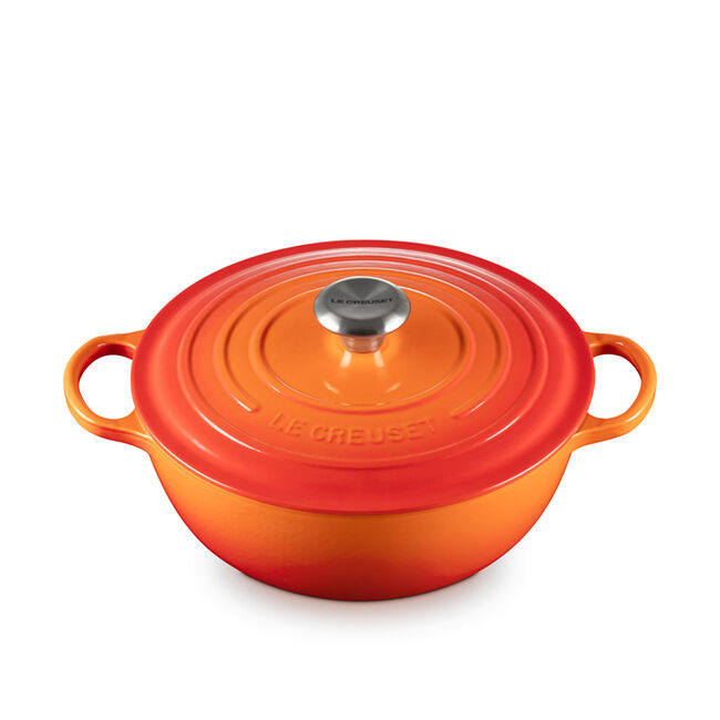 This French Oven is made from enamelled cast iron and has a vibrant, chip-resistant enamel exterior that adds a bold touch to any kitchen. Its secure-fitting lid locks in moisture and flavours, while the ergonomic loop handles ensure a steady grip when transferring from the stovetop to the tabletop.