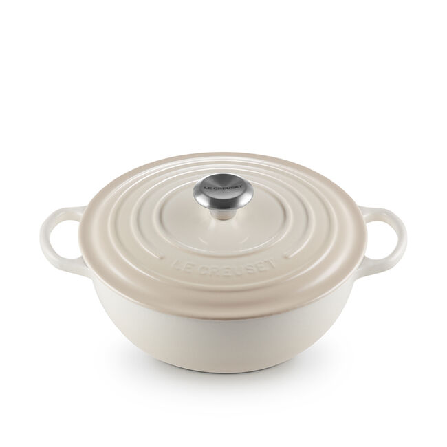 The soft, elegant Meringue-colored enamel exterior is chip-resistant, blending both style and durability. A secure, tight-fitting lid locks in moisture and flavors, while the wide loop handles offer a comfortable, steady grip for effortless movement from stovetop to table.