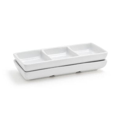 Front Of The House 6" x 2.5" Three Compartment Rectangle Dish, 1 Oz /Compartment, White 12 /Case