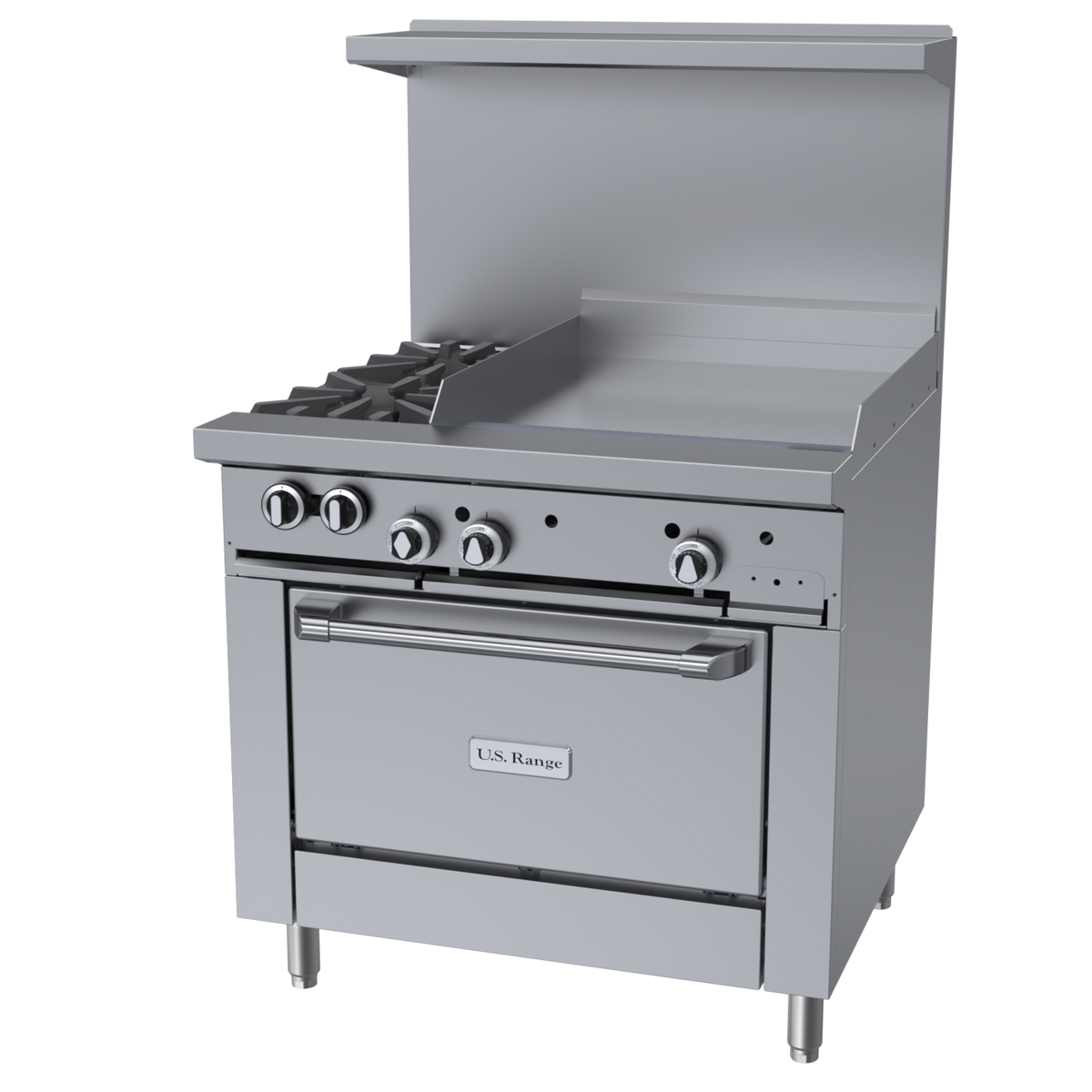 Garland 36" 2 Burner Range, 24" Griddle Right Side, Standard Oven & Thermostatic Controls