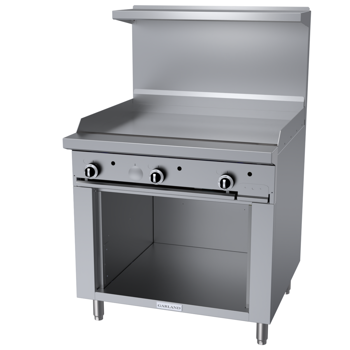The Garland G Starfire Series 36" Heavy-Duty Griddle with Open Storage Base is engineered for high-performance in demanding commercial kitchens. With a powerful griddle top and a convenient base for storage, this unit combines cooking efficiency with ergonomic, space-saving design — ideal for restaurants, hotels, and institutions.