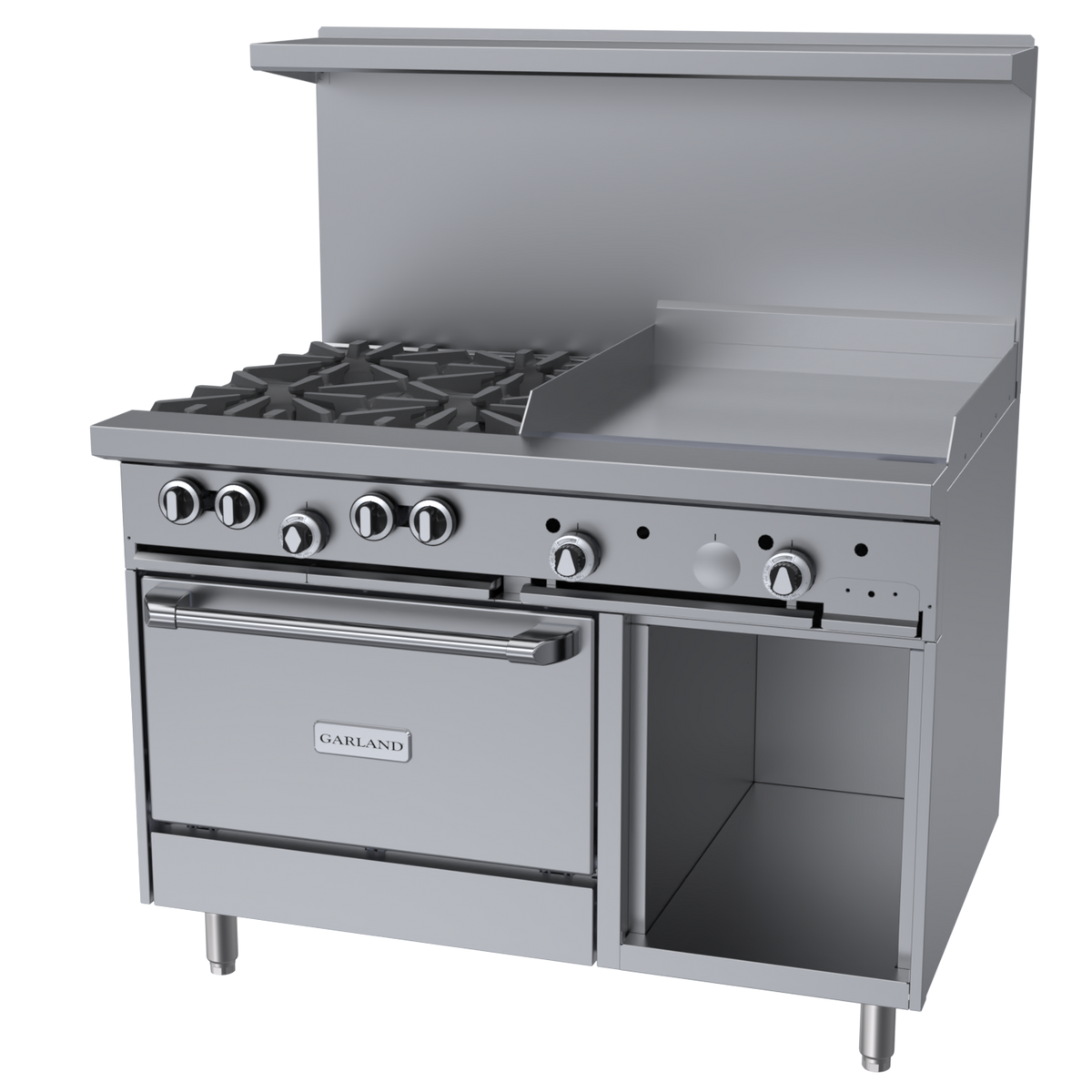 Garland G Starfire 48" Range 4 Burner, 24" Griddle & 1 Standard Oven & 1 Storage Base Natural Gas