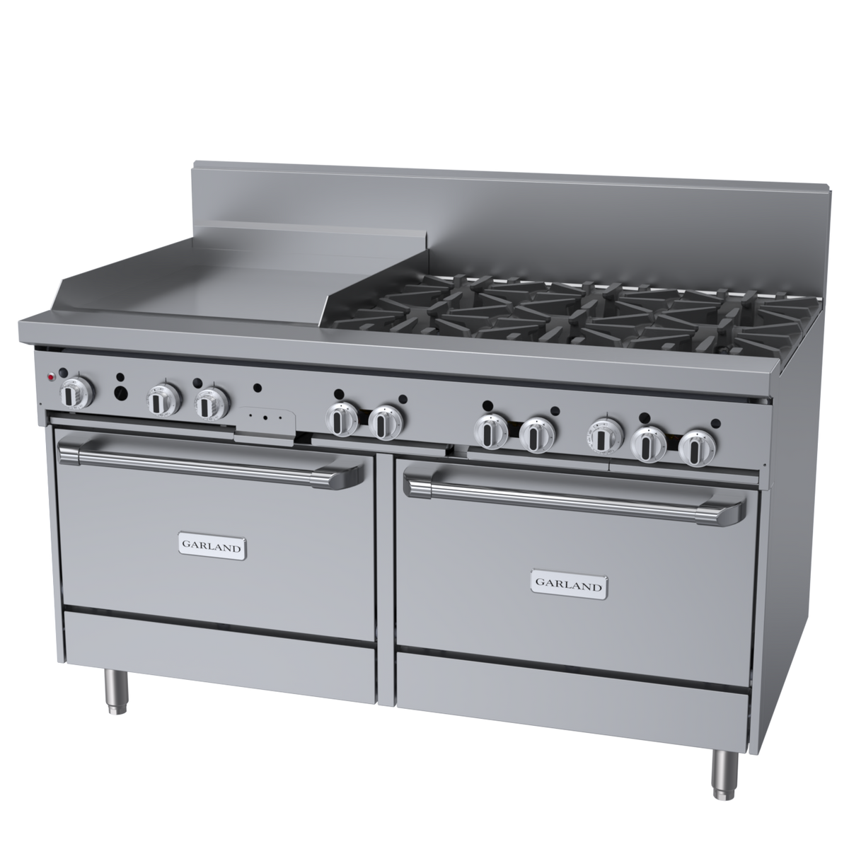 Designed to empower culinary professionals, the Garland G Starfire 60" Gas Range combines high-output open burners, a versatile griddle, and the precision of dual convection ovens. Whether you're sautéing, searing, griddling, or baking, this heavy-duty commercial range offers maximum performance, safety, and reliability in a single, space-saving footprint.