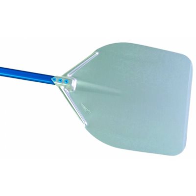 Gi Metal Azzurra Pizza Peel, Overall Length, a professional-grade tool for pizzerias. Featuring a 16" x 16" anodized aluminum head and 23" light blue anodized handle, this pizza peel offers lightweight durability and stability for seamless pizza handling.