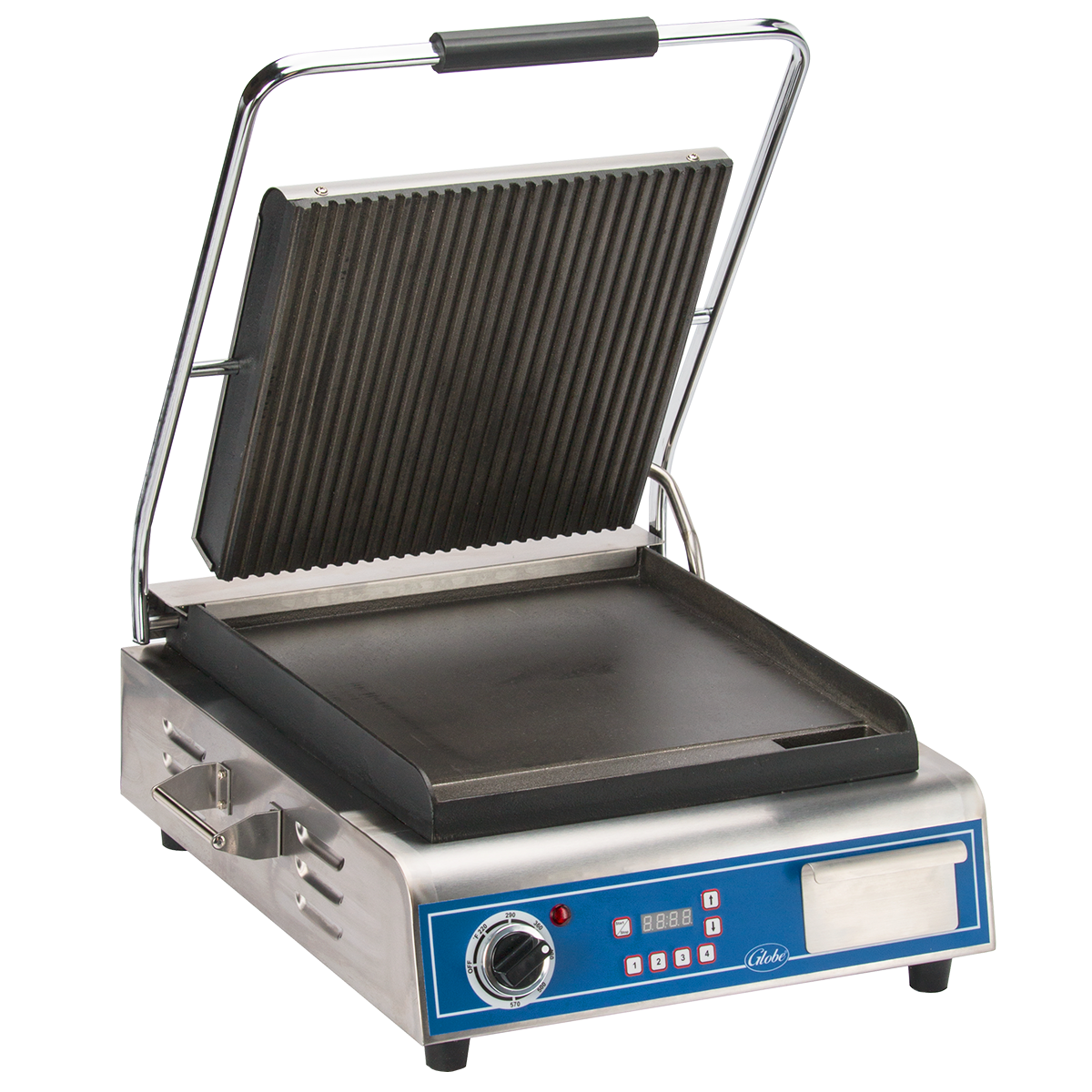 Globe GPG14D-C 14" x 14" Single Panini Grill with Grooved Plates 120V