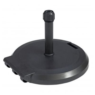 - Cement filled umbrella base with a resin cover and wheels. Wide and heavy for extra stability, this base features heavy duty rollers for ease of movement. Built in handle for convenient portability.