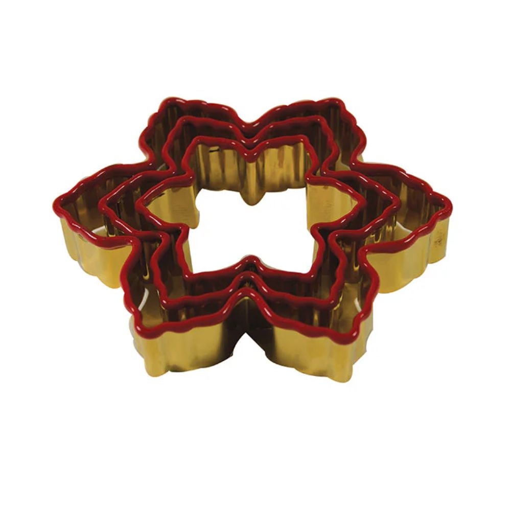 Bring a festive touch to your holiday baking with this elegant set of three antique gold cookie cutters. Each cutter is designed with silicone edges for a comfortable grip and precise cutting, ensuring clean shapes for your holiday treats. Perfect for creating beautifully crafted cookies that add charm to your seasonal celebrations.