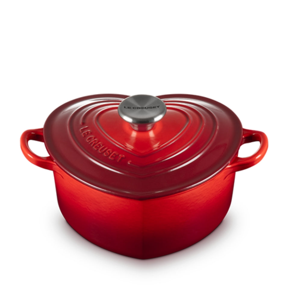 The Le Creuset 1.9L Heart Casserole, Cherry refines the classic Dutch Oven design with its charming heart shape, making it a perfect centerpiece for romantic meals or thoughtful gifts.