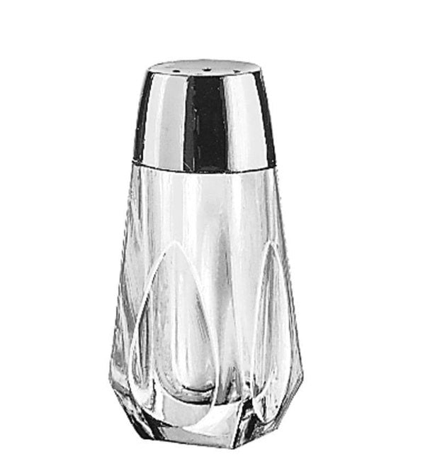 This 1.25 oz shaker is a versatile addition to any kitchen or dining setting, ideal for holding salt, pepper, or other seasonings. Its elegant faceted glass design adds visual charm to the table, while the clear glass body allows guests to see contents at a glance. Featuring a twist-off chrome-plated lid, refilling is quick and hassle-free, making it both a practical and stylish choice for meal times.