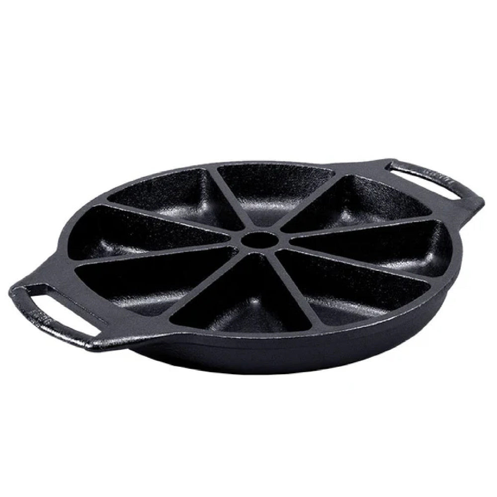 Ideal for home bakers, this cast iron wedge pan delivers consistent heat, durability, and ease of use for beautifully baked cornbread and treats every time.