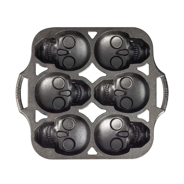 Create eye-catching treats with the Lodge Sugar Skull Mini Cake Pan, designed for festive baking occasions like Halloween or Día de los Muertos. With six detailed skull-shaped cavities, this cast iron pan delivers even heat distribution for consistent, crisp results every time.