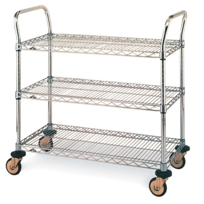 Metro Super Erecta 21" x 36" x 39" Three Tier Utility Cart, Stainless Steel