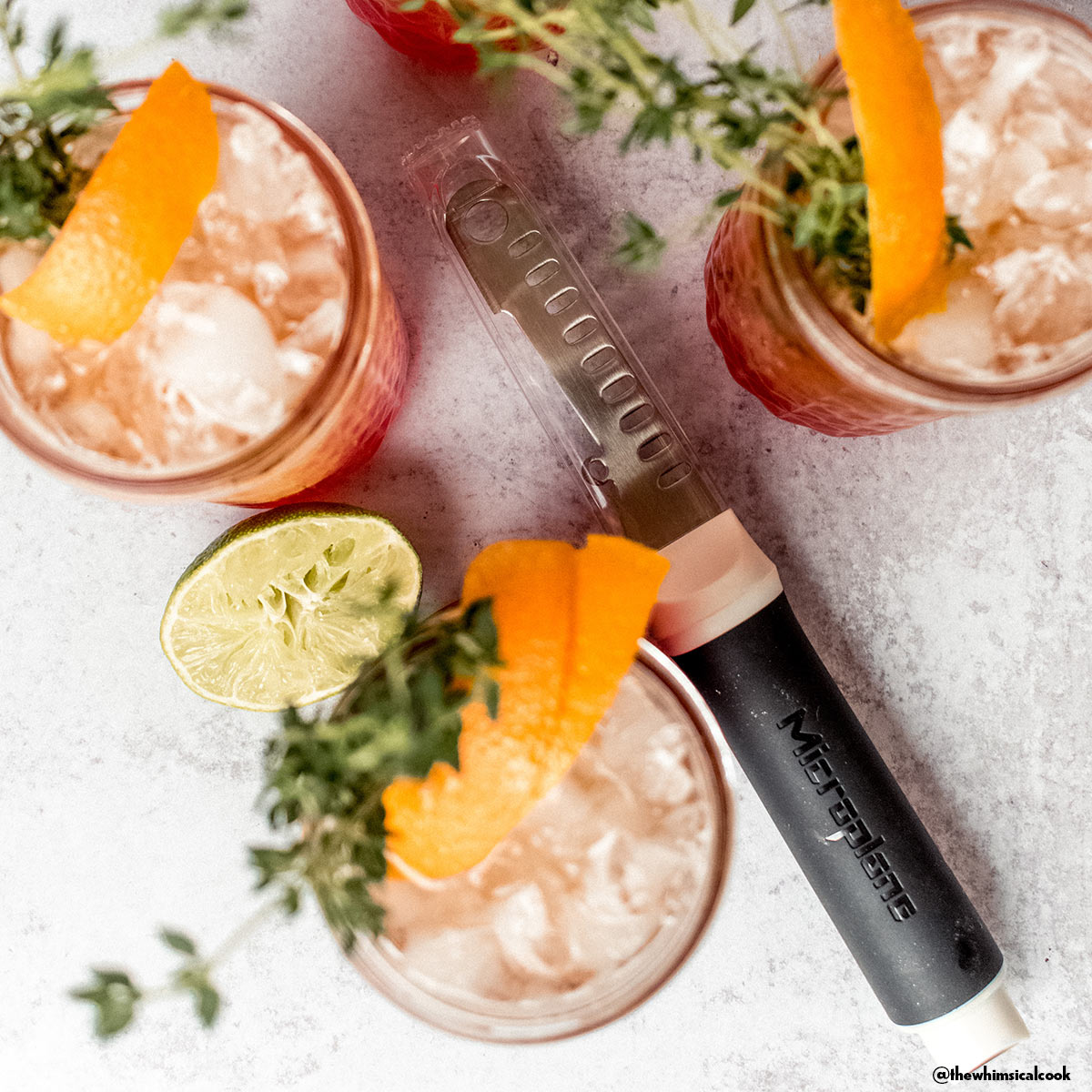 The Microplane Specialty Bar Ultimate Tool minimizes the number of accoutrements needed to make pro-style cocktails and mocktails, the streamlined and extraordinarily efficient Bar Tool will now allow bartenders and party hosts to muddle, stir, cut, score, strain, and create garnishing twists and peels from citrus fruit with one easy and fun to use tool.