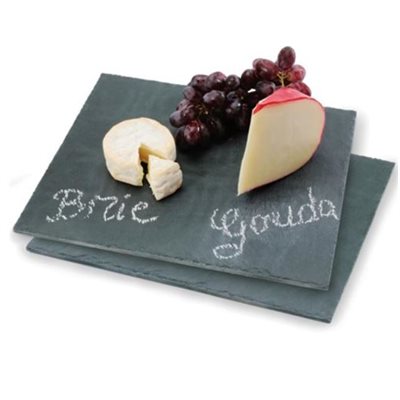 - Slate Platters, set of 2, 12.5 x 10.25" / 3 2 x 26cm, natural slate. Handsome charcoa l grey slate offers a beautifully rustic, organic surface for serving salads, seafoo d and other tasty entrées.