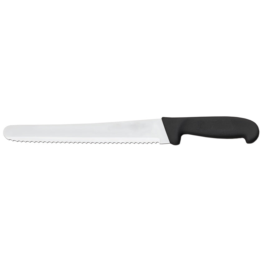 The Nella Slicer Curved Wave Edge Knife with Black Polypropylene Handle is an essential tool for chefs and professionals, designed for precision and efficiency when slicing meats, fish, and other foods. With its curved wave edge, this knife allows for smooth, clean slices with minimal effort.