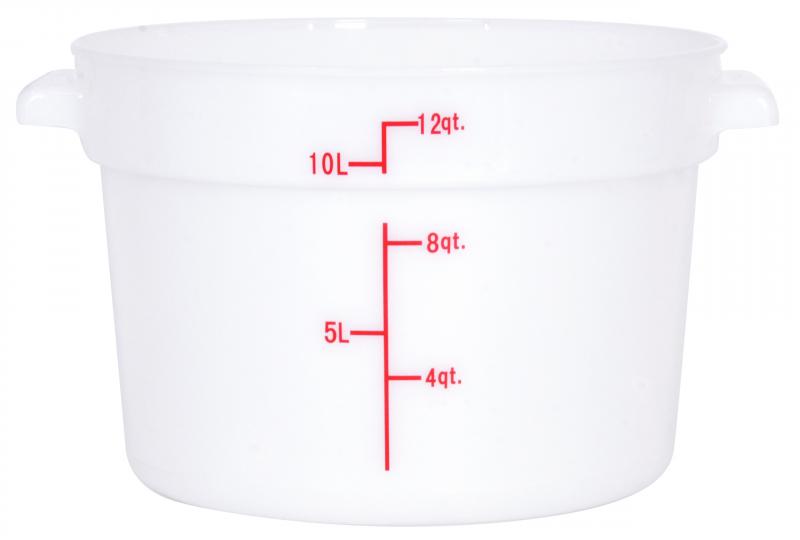 Keep your kitchen organized and your ingredients fresh with the Nella 12 Qt Round Food Storage Container. Designed for commercial kitchens and home use alike, this durable container offers reliable performance and convenient storage for bulk ingredients, liquids, or prepared foods. Built from high-quality polypropylene, it resists temperature extremes, oils, acids, and alcohol making it a versatile choice for any foodservice operation.