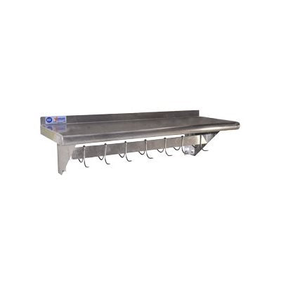 Stainless Steel Pot Rack with Shelf - 12" x 60" with 11 individual chrome plated hooks.