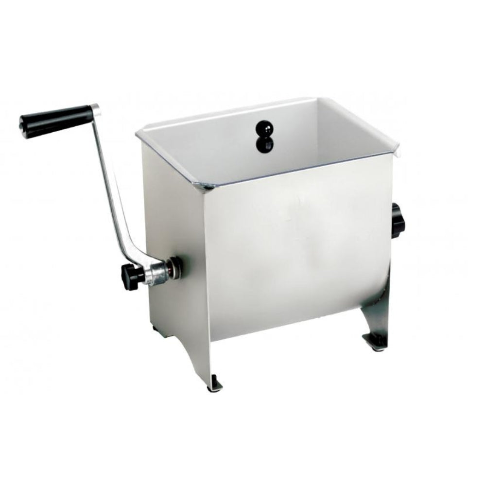The Nella 17 Lb Manual Non-Tilting Mixer is designed to thoroughly and consistently season ground meat from small to medium batches for simple sausage making. Constructed of stainless steel, this mixer is equipped with a removable paddle and an clear plastic cover for easy cleaning.
