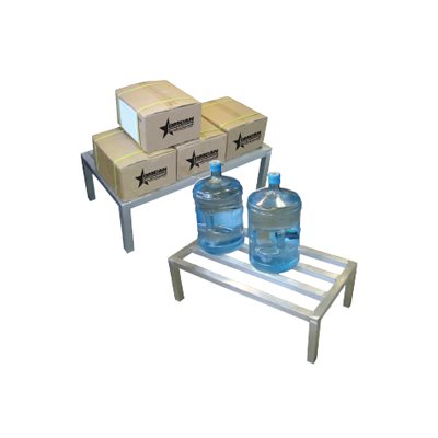Omcan dunnage racks are designed to store products off the floor for sanitation and damage prevention. They are made of welded 1 1/2" square aluminum tube which provides maximum strength and durability. Fully assembled. 20” x 60” x 12”. Capacity: 1600 lbs.