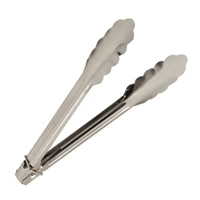 The Nella 9" Utility Tongs are crafted from durable 0.5mm stainless steel, offering a perfect balance of strength and precision. Featuring a convenient sliding locking ring for compact storage, these tongs are ergonomically designed for comfortable handling and reliable performance—ideal for bakeries, cafes, restaurants, catering, and more.