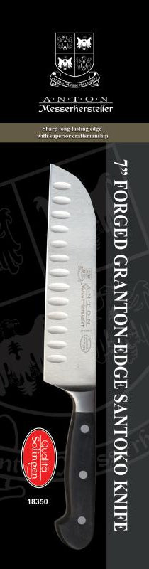 The Nella Anton Santoku Forged G-Edge Slicer, Black Handle is a high-quality, versatile kitchen tool designed for precision and durability. Featuring a Granton-edge design and a forged blade, this Santoku knife is perfect for slicing, dicing, and mincing, making it an essential addition to any kitchen.