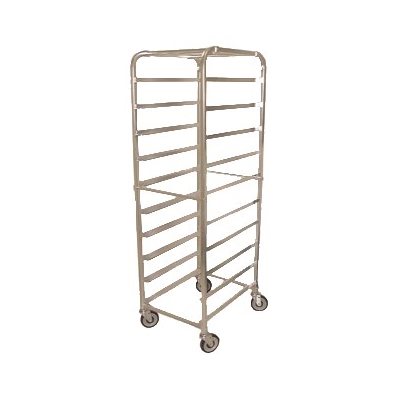 Heavy Duty Knock Down Pan Racks in Aluminum, with welded angle slides. Complete with 5" heavy-duty casters. 26” x 20.25” x 70”.