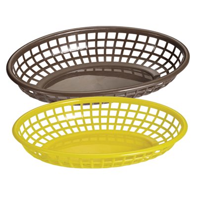 Add a classic touch to your food presentation with the Nella Plastic Oval Basket. Designed for durability and everyday use, this brown basket is perfect for serving sandwiches, burgers, fries, and appetizers in diners, cafés, and food trucks. Pair it with greaseproof paper for a clean and appealing display.