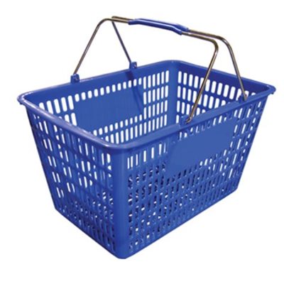 - Provide your customers with optimal shopping convenience with a selection of shopping basket! Made of durable, easy to clean plastic with reinforced ribbing for added support, this basket is built to last through the multiple daily uses, the holes in the basket prevent any spill or water build up.