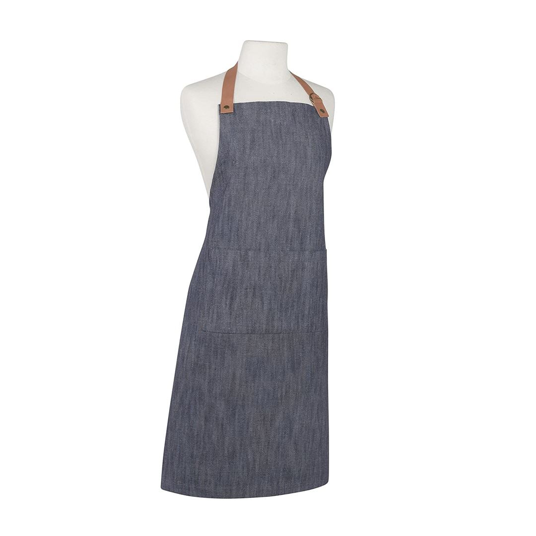 Plastic water bottles are recycled into polyester to create a wrinkle resistant apron for the kitchen or workshop. This unisex apron is made from 35 percent recycled PET and 65 percent cotton. It measures 28 inches wide and 36 inches long and ties at the waist for a comfortable fit. The top strap is made from leather, and snaps off for easy washing. Simple care: machine wash. For 50 years, Now Designs has created kitchen textiles, table linens and accessories that are consistently recognized for superior colors, trends, design and unsurpassed quality and workmanship.
