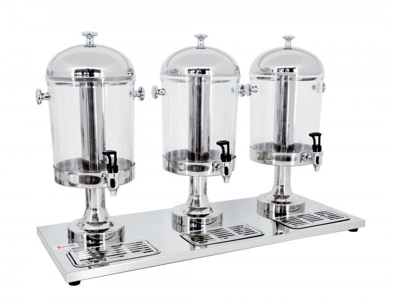 Let your customers and guests enjoy the finest drinks you have to offer with the Nella 3 x 8 Qt Hopper Stainless Steel Ice Cooled Juice Dispenser. These dispensers are perfect self-serve drink stations for any catered events. They feature a sleek design, which makes a visually appealing presentation for any occasion.