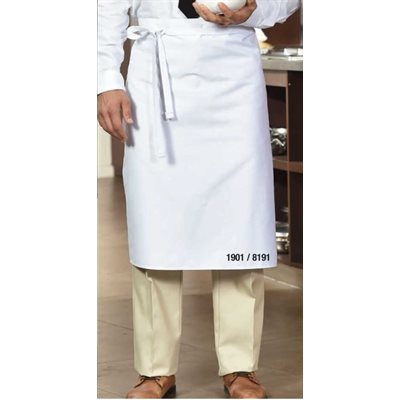 - A stylish full-length multi-function apron that’s a favourite of restaurant staff everywhere. It features two convenient front pockets and two strong self-ties at the waist for a secure yet comfortable fit.