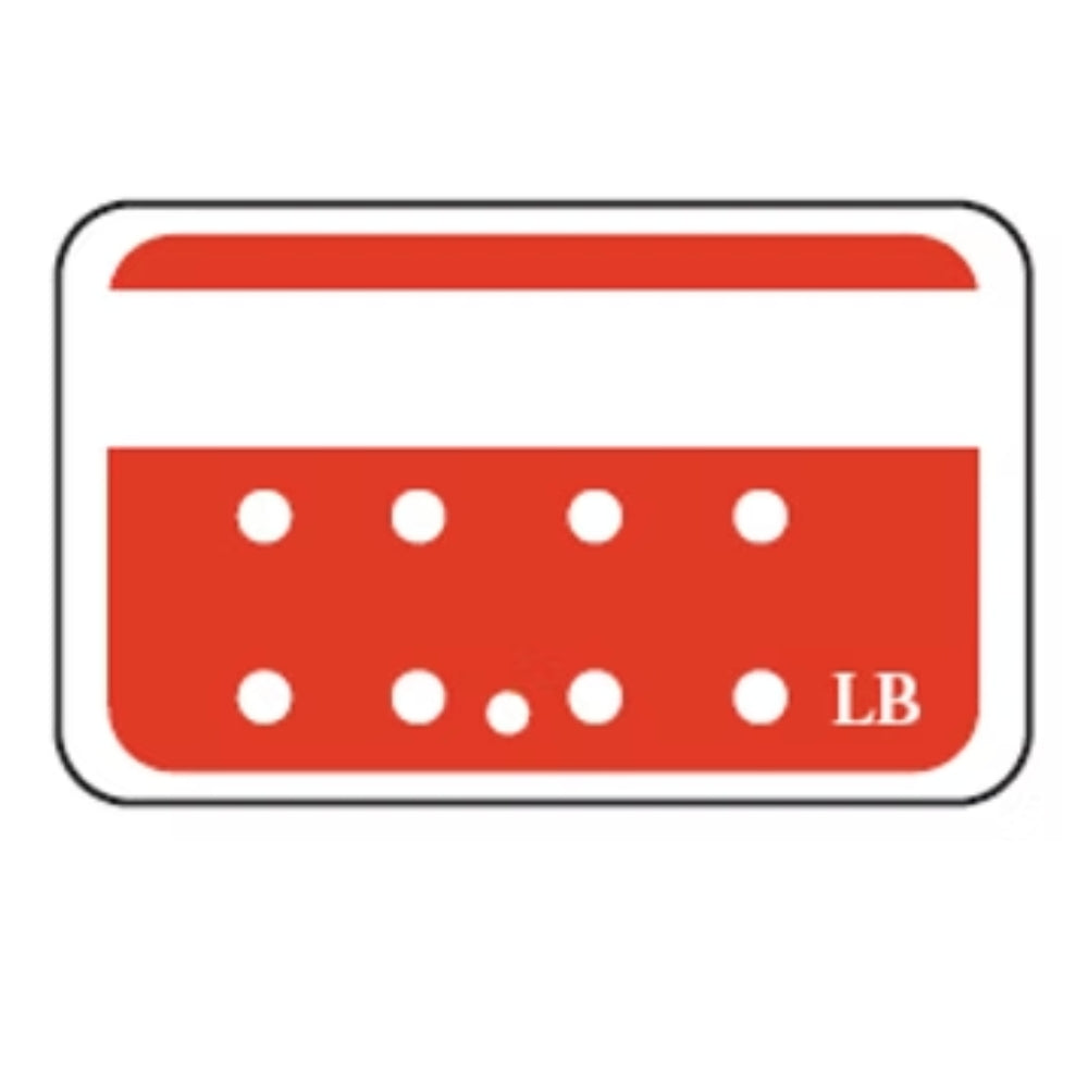High Visibility Design: Red and white background with bold white "LB" print for clear weight-based pricing.