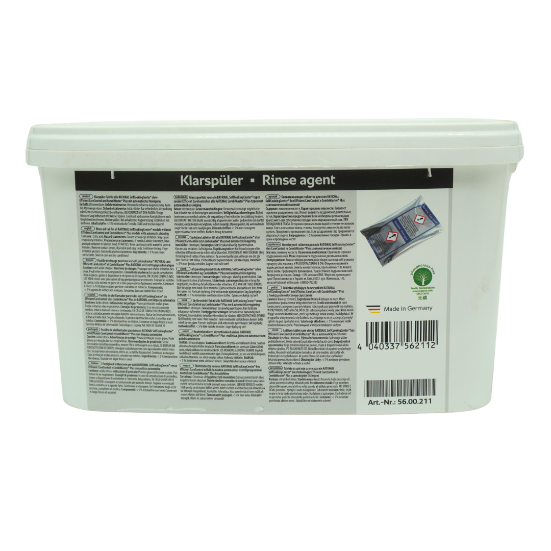 Rational Rinsing Tabs are highly effective care products designed to actively protect your SelfCookingCenter Combi Ovens. These rinse aid tabs ensure the cooking cabinet stays hygienically clean and sparkling, while helping to maintain peak performance and extend the oven’s service life.