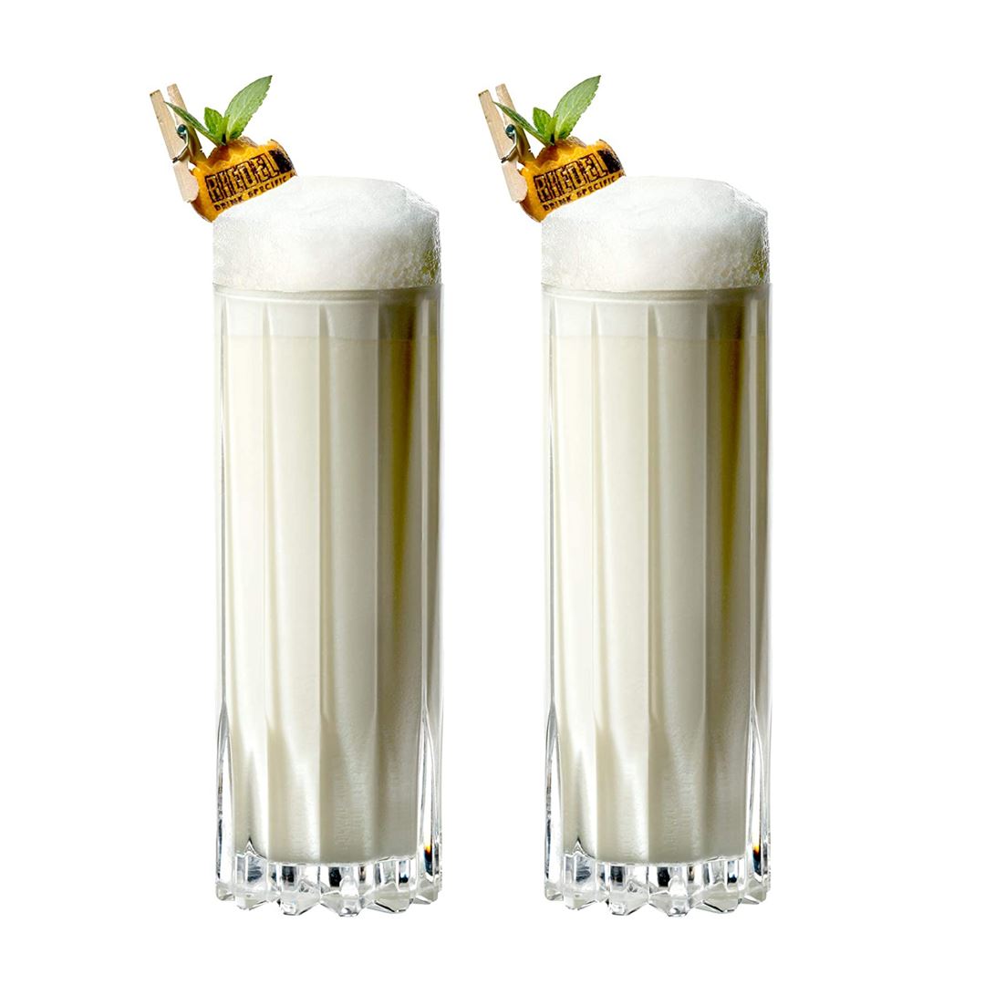 The Riedel Drink Specific 9 Oz Fizz Cocktail Glass, 2 /Set is a specialized piece from the RIEDEL Barware Drink Specific Glassware collection, designed to enhance the presentation of cocktails with frothy or foam-topped finishes.