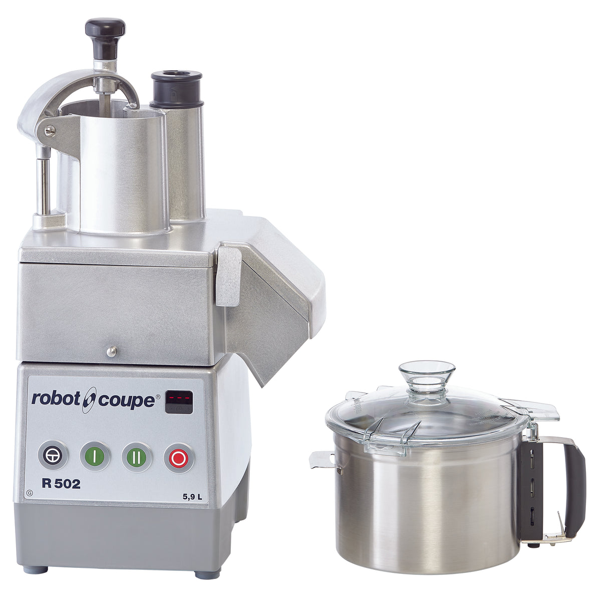The Robot Coupe R 502 Combination Processor is an exceptional tool for high-volume food preparation, combining the versatility of a bowl cutter and vegetable prep attachment in one powerful machine.
