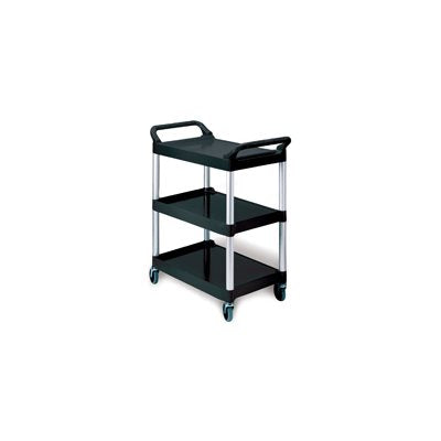 The Rubbermaid Three Tier Utility Cart is a versatile, durable solution for tasks in restaurants, offices, or warehouses. Its 200-pound capacity and sleek black design with brushed aluminum uprights make it ideal for transporting supplies or equipment, combining functionality with a stylish, professional look.