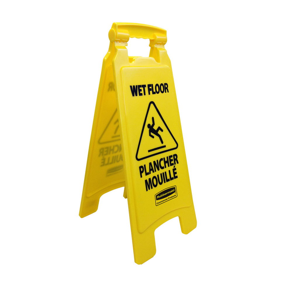 The Rubbermaid Two-Sided "Wet Floor" Sign is a bright and durable safety tool, designed to alert people to slippery surfaces in homes, offices, or commercial settings. Its bold, two-sided "Wet Floor" text and vivid yellow color ensure maximum visibility from all angles, helping prevent accidents and injuries.