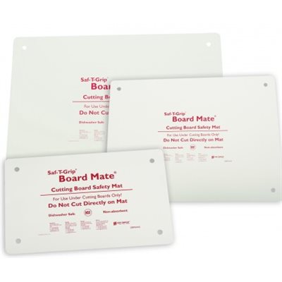 Saf-T-Grip® Board–Mate® is an essential accessory for safe and sanitary food prep. Place Board–Mate® grip pads under cutting boards to minimize dangerous board slips and injuries. The non-porous material securely holds cutting boards in place and minimizes cross–contamination, unlike the alternative, un–safe “wet towel” method.