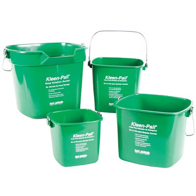 Kleen–Pail® meets HACCP guidelines as dedicated-use, labeled containers for cleaning and sanitizing and detergent solutions. Color-coding helps minimize any potential confusion between cleaning and sanitizing solution containers and meets HACCP guidelines for cleaning and sanitizing cloths. Durable handle design.Trilingual "Sanitizer" and "Cleaner" printing and imprints to help meet health codes and reinforces employee training (English/Spanish on front panel and English/French on back panel)