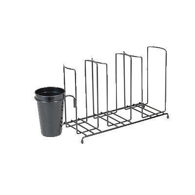 Cup & Lid Wire Organizers are a simple and economical way to organize cups and lids. Anti-slip feet keep the unit in place. Available in 3 or 5-stack models, both include a straw caddy.