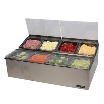 San Jamar EZ-Chill Condiment Bar with 8 Compartments, Stainless Steel, 25.3" x 16.5" x 8"