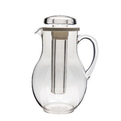 The Service Ideas Plastic Pitcher with Ice Tube is ideal for continental breakfasts, buffets, and everyday beverage service. Its removable ice tube keeps drinks chilled without diluting them, making it perfect for water, juice, or other cold beverages. Constructed from BPA-free MS plastic, this pitcher offers excellent clarity and high rigidity for durable, long-lasting use.