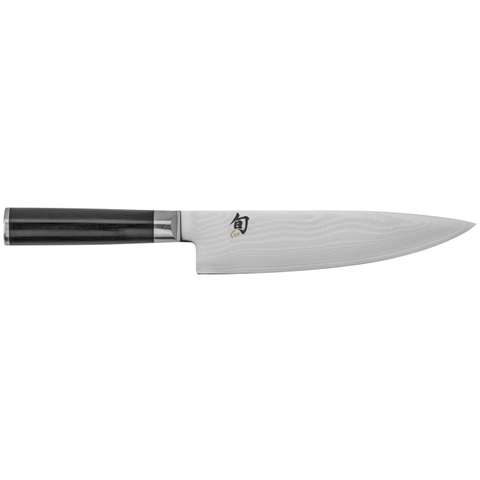The Shun Classic Chef's Knife is an all-purpose essential, designed for effortless cutting, slicing, dicing, and mincing. Its wide blade keeps knuckles elevated during use and makes ingredient transfer from board to pan seamless. The gently curved belly supports a smooth rocking motion, ideal for finely chopping herbs and vegetables with precision.