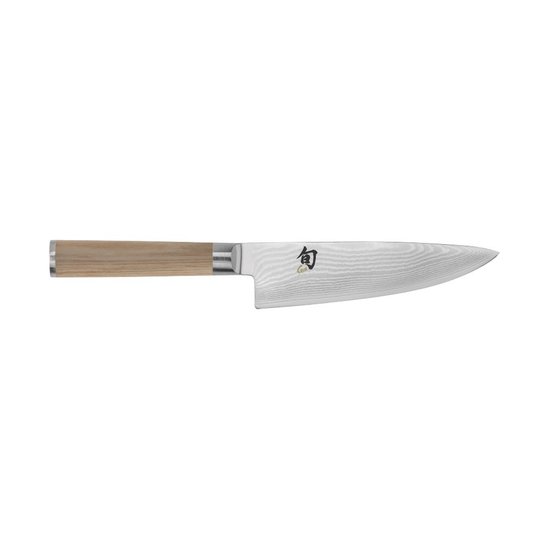 The Shun Classic Blonde Chef’s Knife is a nimble, lightweight all-purpose blade, perfect for cooks who value agility and elegance in their kitchen tools. This chef’s knife excels at slicing, dicing, and chopping small to medium-sized fruits, vegetables, and other ingredients, making it a versatile choice for daily prep or intricate tasks. Its compact design ensures ease of use, offering exceptional control that many chefs prefer for a wide range of cutting needs. The knife’s wide blade provides ample knuckle clearance on the cutting board and simplifies transferring food to pans, while its curved belly allows for gentle rocking to finely mince herbs or spices, enhancing culinary precision.
