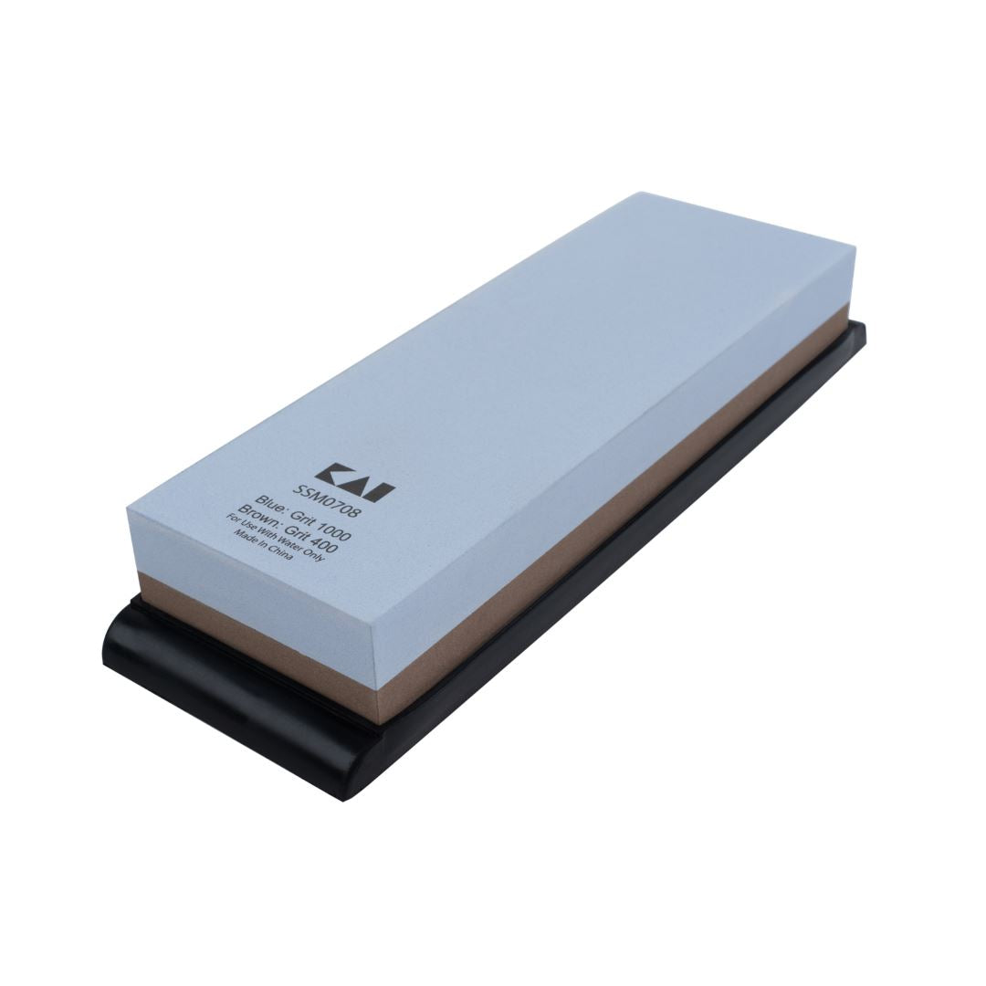 Shun Combination Whetstone, a premium sharpening tool for maintaining razor-sharp Shun cutlery. Featuring dual grits—400 for coarse sharpening to quickly restore dull edges and 1000 for fine polishing—this whetstone ensures professional results for knives and tools.