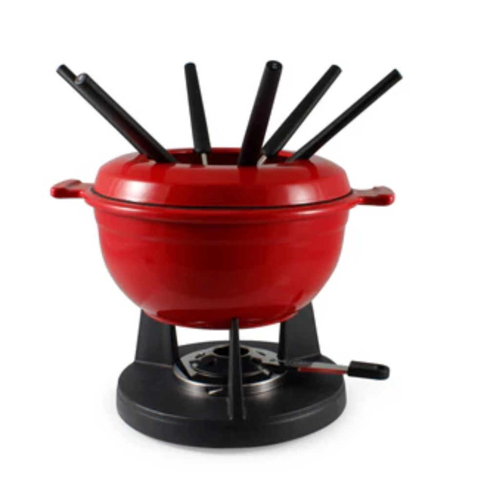 Swissmar Lucerne 10 Piece Cast Iron Fondue Set, Cherry Red