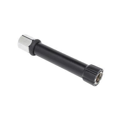 Hose reel black grip handle with washer, 1/2" NPSM female inlet and 3/4-14 UN female outlet.