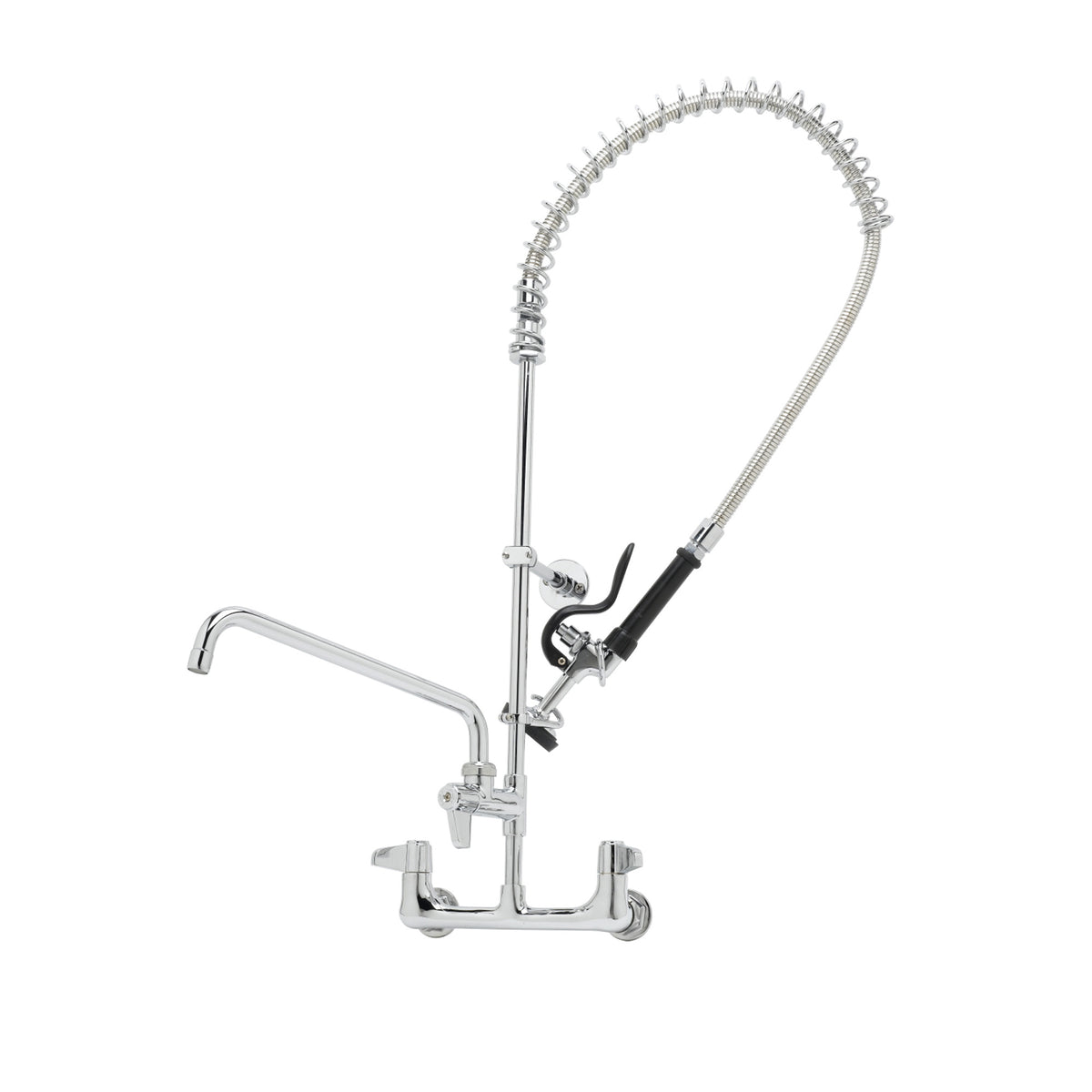 T&S Brass Pre Rinse Wall Mount Faucet with 8" Centre, 44" Hose, 12" Swing Spout